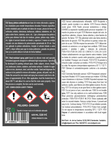 Ideal para el pintado de tubos de escape, pinzas de freno en vehículos, estufas, chimeneas, barbacoas, calderas, radiadores, etc...