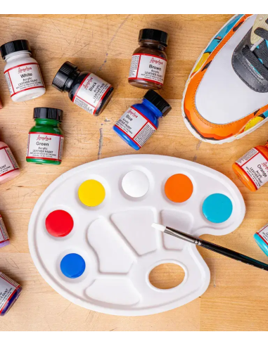 Ideal para el pintado de zapatillas, botas, chaquetas, bolsos, sofás, asientos etc.. en definitiva en cualquier superficie de cuero o polipiel que necesite ser renovada o desemos darle nuestro toque personal.