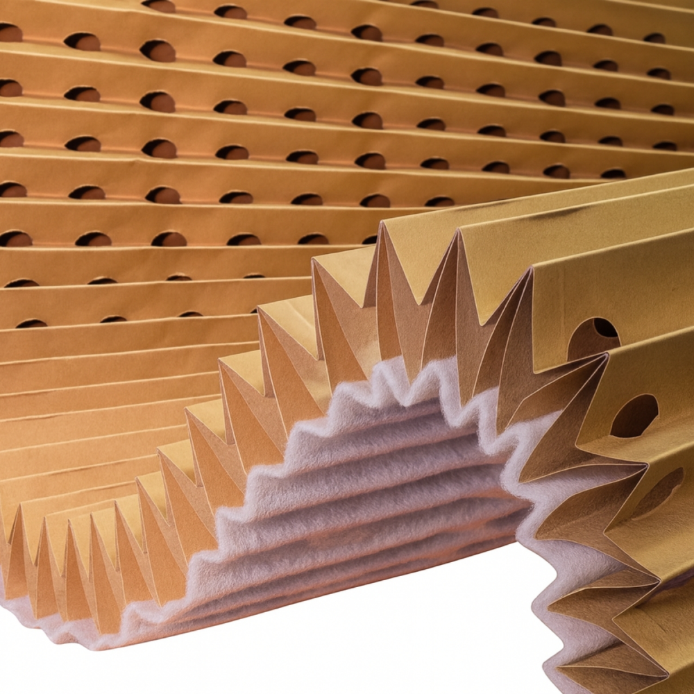 El filtro cartón perforado para filtración industrial crea una separación por inercia, obligando al flujo de aire cargado de partículas a cambiar varias veces de dirección.