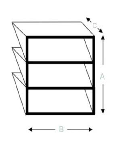 ANCHO (B) x ALTO (A) x PROFUNDIDAD (C) / NÚMERO DE BOLSAS