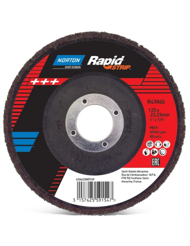 Disco Rapid Strip Norton con fibras sintéticas fuertes y abrasivo de carburo de silicio extra grueso para la eliminación de revestimientos sobre diversos materiales.