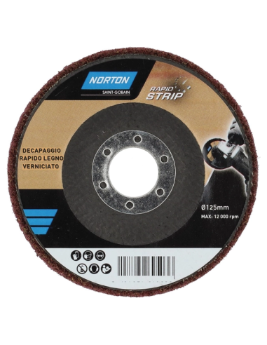 Disco norton de fibras no tejidas con nylon resistente y granos abrasivos para decapar capas de pintura o barniz en madera.