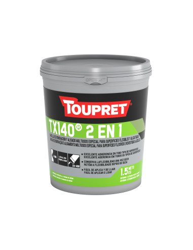 Masilla TX 140 2 en 1 es una masilla en pasta de usos multiple para la aplicación en interior y exterior. Dispone de una excelente adherencia sobre todo tipo de soportes como azulejos y baldosas.