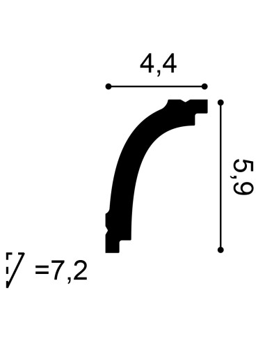Cornisa clásica de tamaño medio con curva sencilla. L 200 x H 5,9 x A 4,4 cm Durofoam®, un polímero extrusionado de peso ligero a base de una mezcla de poliestireno de densidad media. CB523 Orac Decor.