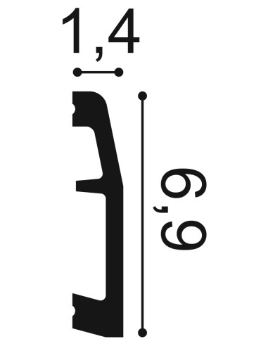 L 200 x H 6,9 x A 1,4 cm Duropolymer®, polímero fabricado por extrusión, resistente a impactos fuertes a base de una mezcla de poliestireno de alta densidad.