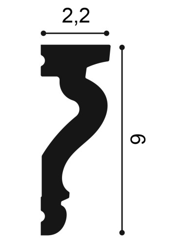L 230 x H 6 x A 2,2 cm Duropolymer® Polimero fabricado por extrusión, resistente a impactos fuertes a base de una mezcla de poliestireno de alta densidad. DX174-2300 Orac Decor.