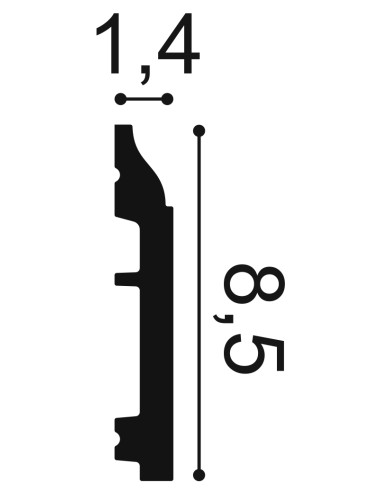 L 200 x H 8,5 x A 1,4 cm Duropolymer® Polimero fabricado por extrusión, resistente a impactos fuertes a base de una mezcla de poliestireno de alta densidad.
