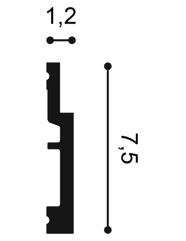 L 200 x H 1,2 x A 7,5 cm Duropolymer® Polimero fabricado por extrusión, resistente a impactos fuertes a base de una mezcla de poliestireno de alta densidad.
