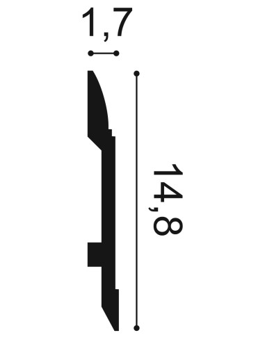 L 200 x H 14,8 x A 1,7 cm Duropolymer®, polímero fabricado por extrusión, resistente a impactos fuertes a base de una mezcla de poliestireno de alta densidad. SX104F Orac Decor.
