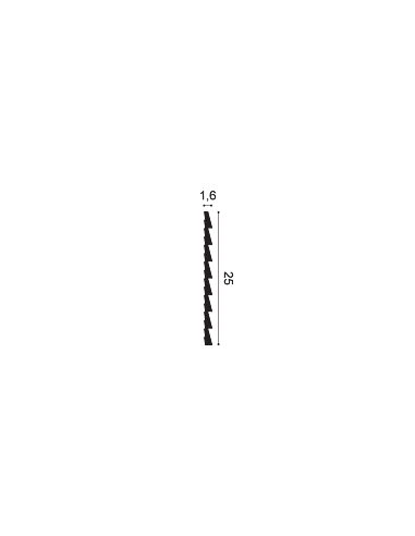L 260 x H 25 x A 1,3 cm Duropolymer® , polímero fabricado por extrusión, resistente a impactos fuertes a base de una mezcla de poliestireno de alta densidad.