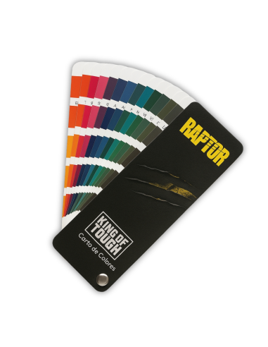 La carta de colores Raptor esta diseñada en acabados lisos sin textura. Las muestras de color de esta carta de colores tienen un acabado satinado.