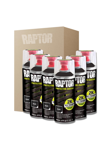 6 X Spray Pintura Raptor 2K Negro 400 Ml