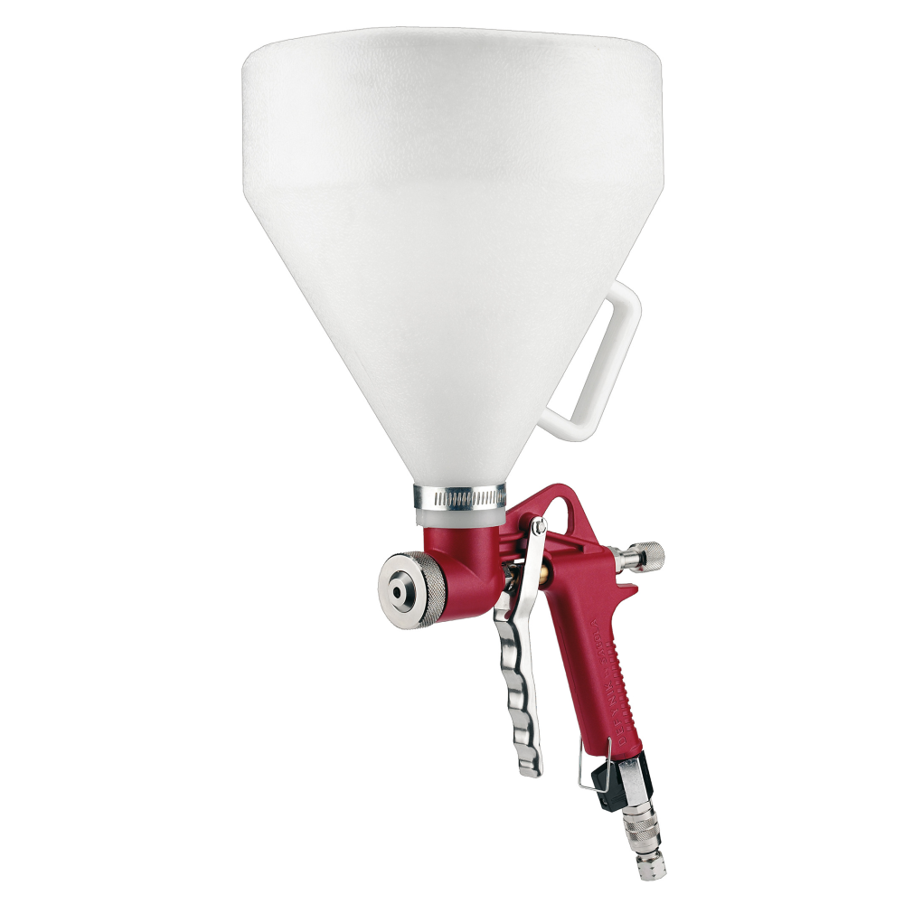 Pistola de gravedad classic Gotele de Sagola on válvula de cierre de entrada de aire y sistema antiatasco de producto. Reguladores de producto y caudal de aire.