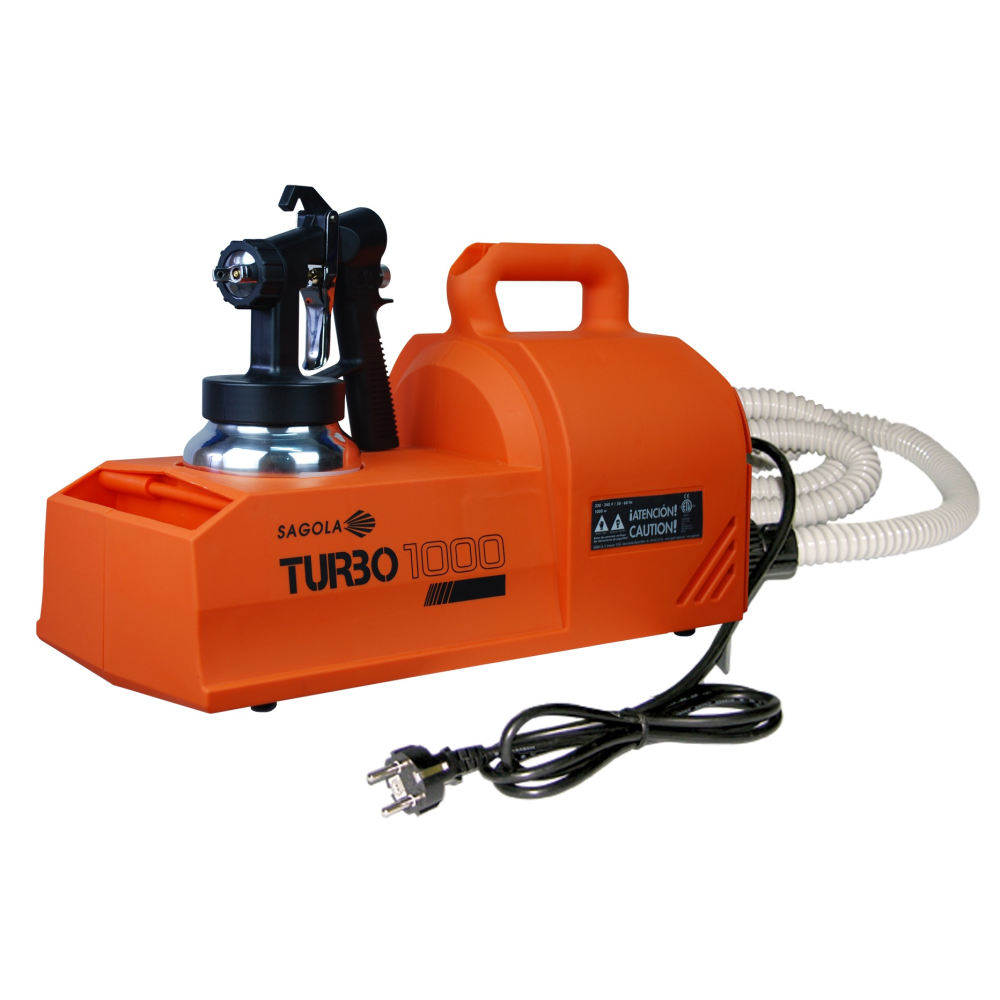 Turbina Turbo 1000 Sagola con pistola metálica HVLP con manguera válido para todo tipo de pinturas, acabados, imprimaciones, multicolores (incluye dos combinaciones de pico de fluido de serie).