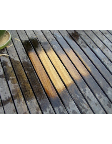 Limpia y elimina las manchas de grasa incrustadas en maderas compuestas. Desglasa maderas exóticas nuevas. Restaura el aspecto natural de la madera en minutos.